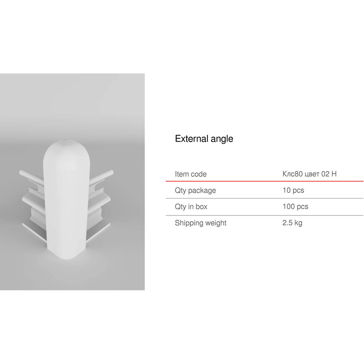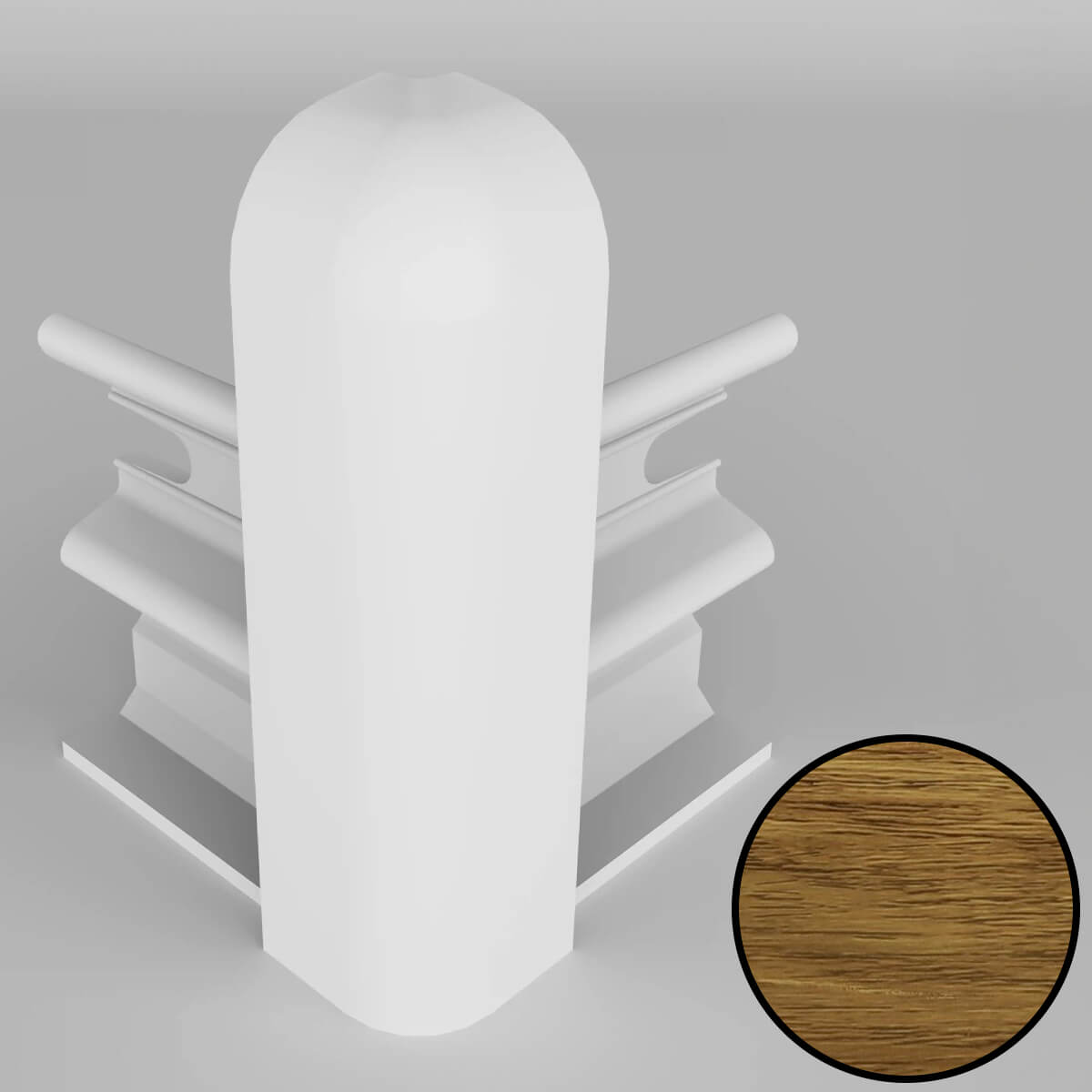 Unghiul exterior Comfort Classic 80 mm, Stejar imperial 100 unește plintele din seria Comfort Classic pe colțul exterior al peretelui, oferind o trecere lină și protejând capetele de deteriorări.