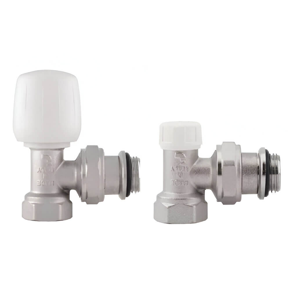 Set robineți tur+retur unghiulari Hydro-S 1/2 filet exterior x 1/2 filet interior pentru radiator (0711442) este destinat conectării radiatoarelor de încălzire la sistem și gestionării comode a fluxului agentului termic. Acest set asigură o îmbinare fiabilă și permite reglarea sau oprirea ușoară a alimentării cu apă.