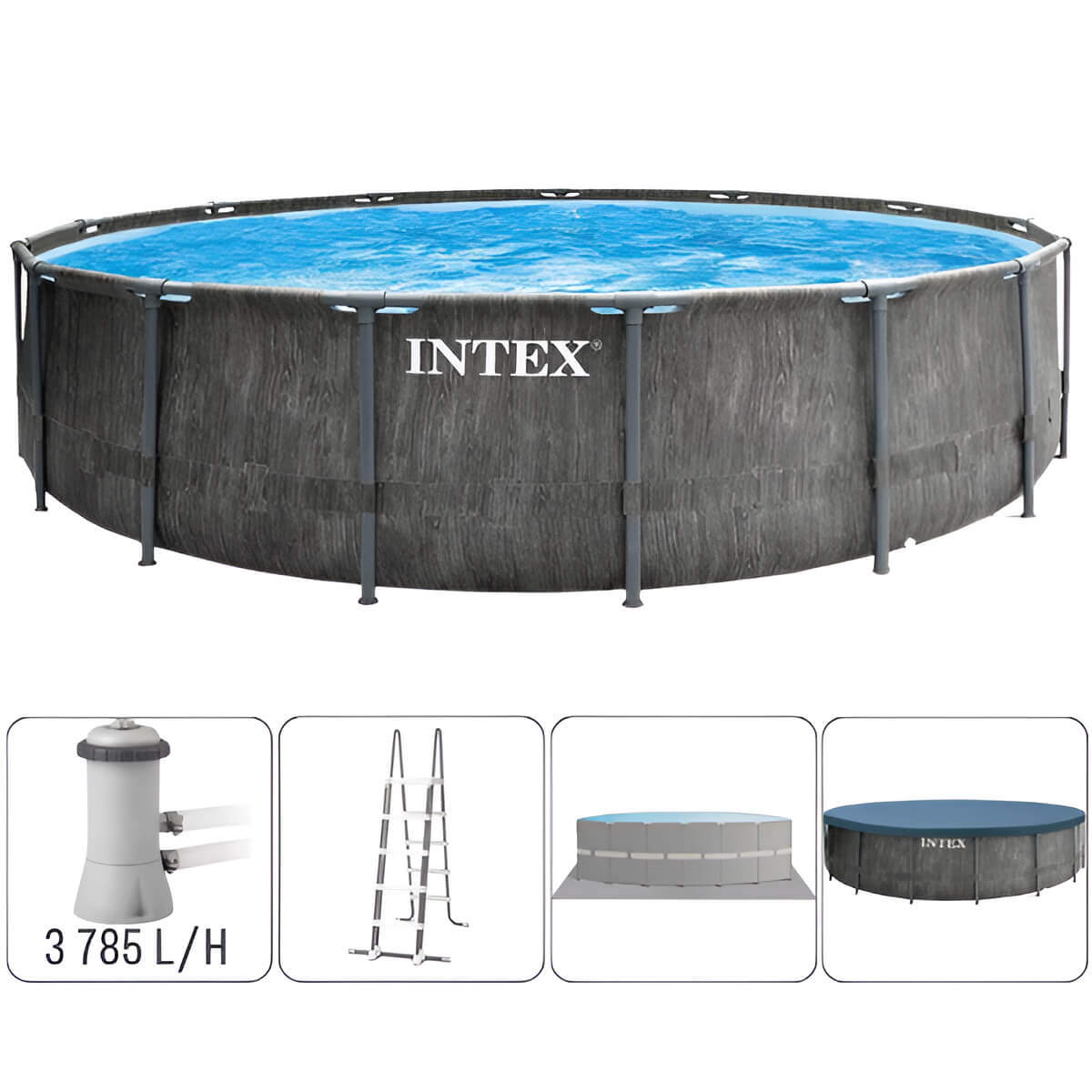 Piscină cu cadru INTEX GREYWOOD PRISM FRAME PREMIUM 457x122 cm, 16805 l, rotund - piscina de calitate premium cu un cadru din metal rezistent la coroziune. Pereții SUPER-TOUGH realizați din trei straturi pentru a suporta sarcini maximale. Supapă de golire practică, pompă de filtrare Hydro Aeration (3785 l/h) pentru purificarea apei. Ideal pentru o utilizare de lungă durată.