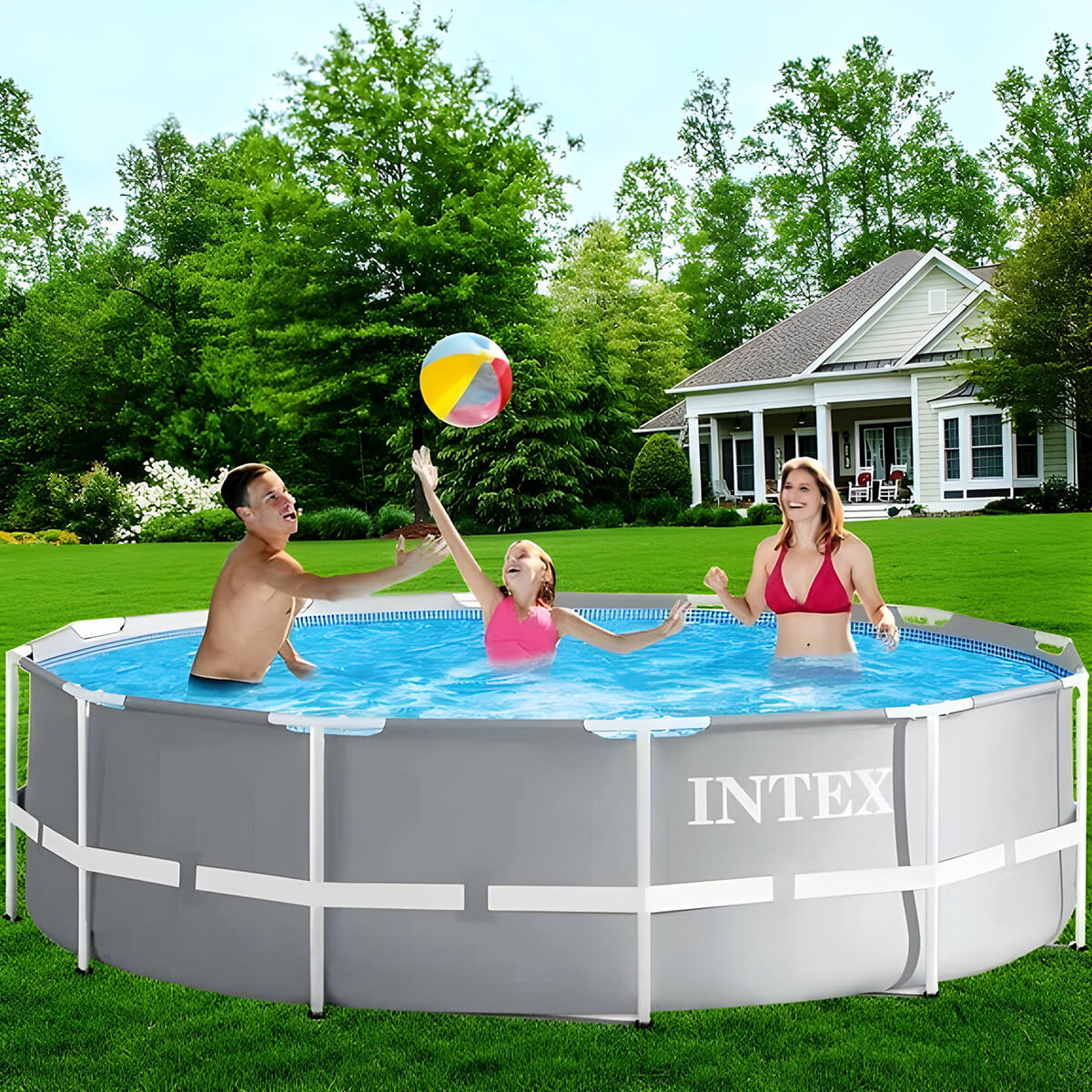 Piscină cu cadru INTEX PRISM FRAME PREMIUM 366x99 cm, 8592 l, rotund - rotund, cu cadru din oțel armat și pereți din trei straturi de vinil și poliester durabil. Tehnologia SUPER-TOUGH asigură fiabilitatea. Asamblare rapidă pe o suprafață plană, în 45-60 de minute.