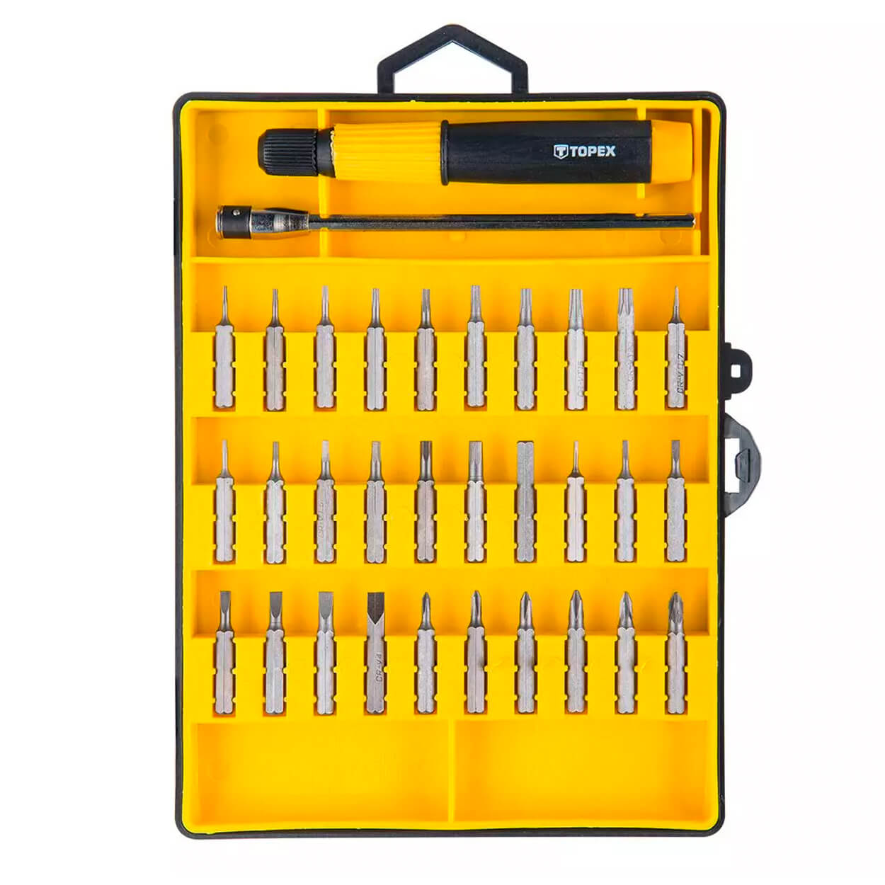 Setul de biți de precizie TOPEX 39D555 - un partener de încredere pentru lucrările de precizie. Conține 30 de capete de înaltă calitate din oțel crom-vanadiu cu diferite tipuri de șurubelnițe, cruce, Torx și inele hexagonale. În pachet se include și un mâner și un prelungitor pentru lucrul în locuri greu accesibile. Ideal pentru sarcini de precizie.