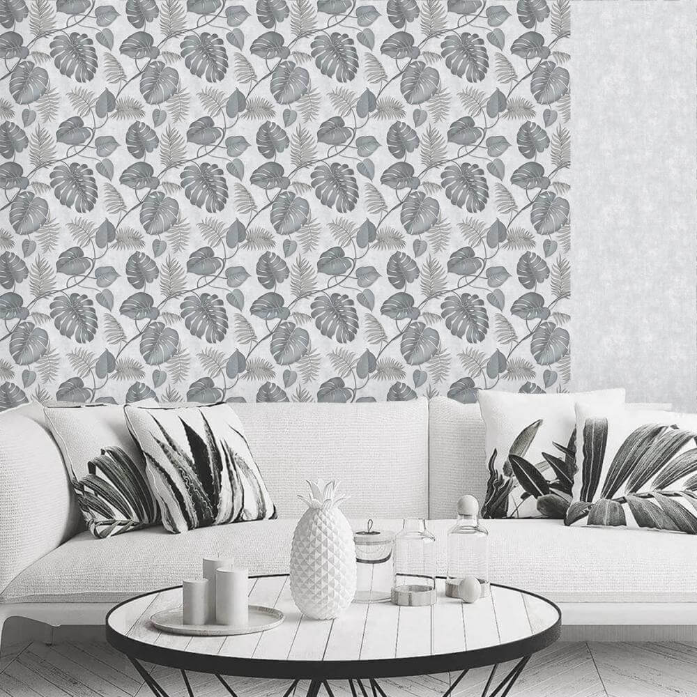 Tapet din hârtie gofrată Saratovskie Oboi Monstera fon-06 – o soluție stilată și practică pentru amenajarea interioară în stil modern. Nuanța sa discretă de gri creează o atmosferă confortabilă și se asortează excelent cu diverse accente de culoare din încăpere.