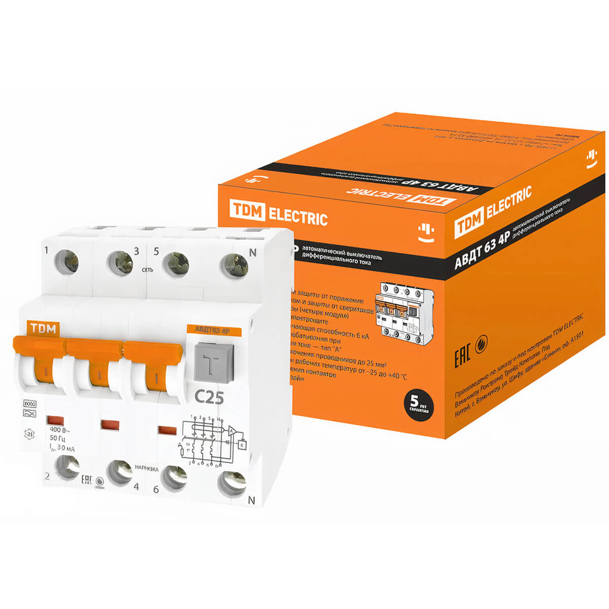 Întrerupător automat diferențial TDM AVDT 63 4P C 25A 30mA SQ0202-0018