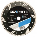 Turbo GRAPHITE 57H630 este un disc diamantat fabricat dintr-un aliaj de oțel mangan de înaltă calitate, conceput pentru a fi utilizat pe polizoare unghiulare manuale la tăierea betonului, granitului, marmurei, cărămizii, plăcilor ceramice și a altor materiale de construcții dure. Segmentele diamantate de înaltă rezistență asigură o tăiere eficientă. Discul diamantat Turbo GRAPHITE este potrivit pentru lucrări grele de construcții.
