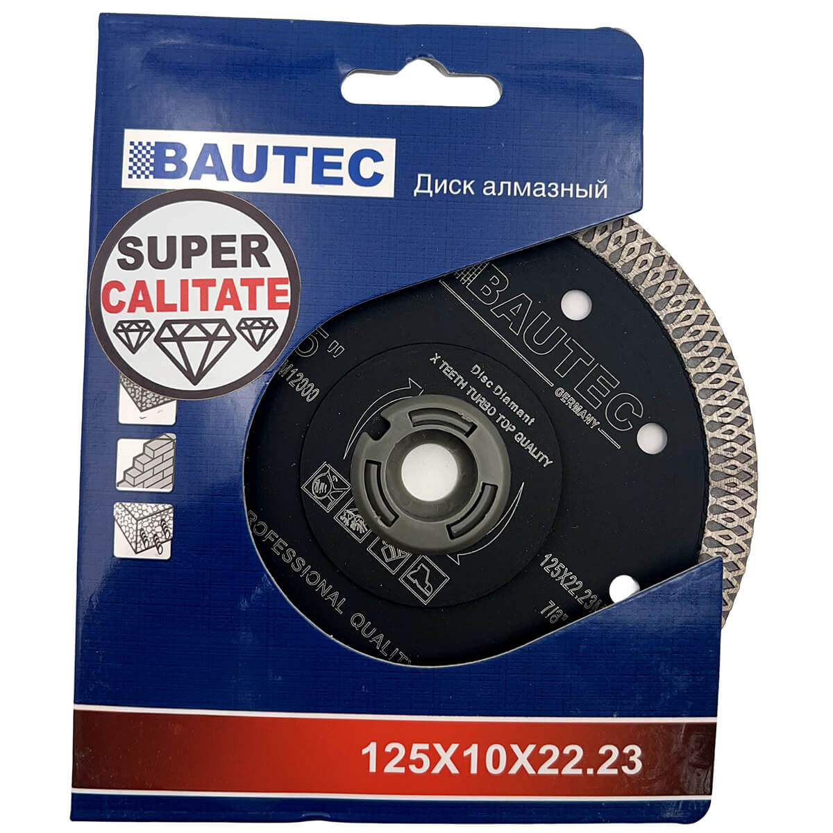 Disc diamantat BAUTEC UNIVERSAL 125x10x22.23 mm (Art. 2108) - este destinat utilizării cu polizoare unghiulare, tăietoare manuale și mașini de tăiat plăci ceramice. Ideal pentru tăierea uscată și umedă a tuturor tipurilor de gresie, faianță, plăci ceramice, plăci din piatră naturală și gresie porțelanată. Asigură o tăiere precisă și uniformă, fără ciobituri, fiind perfect pentru lucrări profesionale de montaj.
