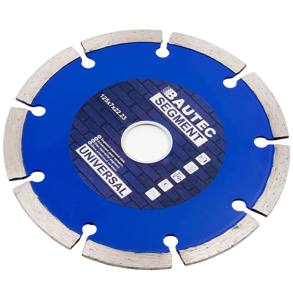 Disc diamantat segmentat universal BAUTEC 125x7x22.23 mm (Art. 5702) este conceput pentru tăierea eficientă a materialelor de construcție dure. Datorită tehnologiei precise de segmentare, oferă o performanță stabilă chiar și în condiții de utilizare intensă.