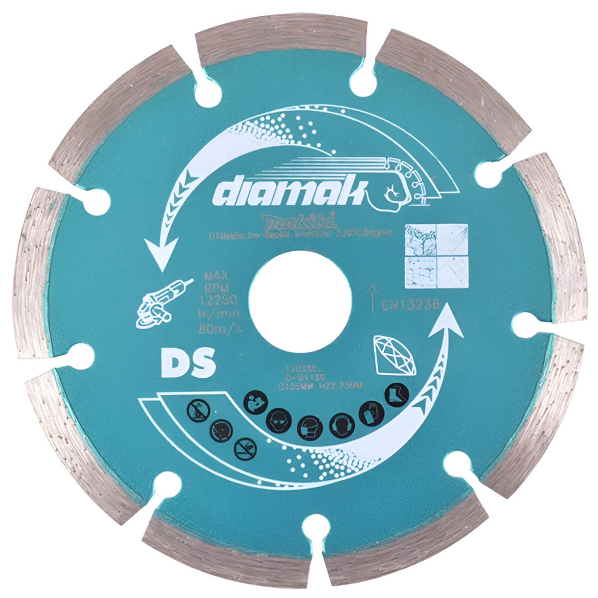 Disc diamantat segmentat 125x22.23 mm Makita D-61139-10 - conceput pentru tăierea betonului, marmurei, materialelor pentru acoperișuri, betonului de zgură și plăcilor ceramice. Oferă viteză mare de tăiere, durabilitate și siguranță atunci când sunt utilizate cu polizoare unghiulare.