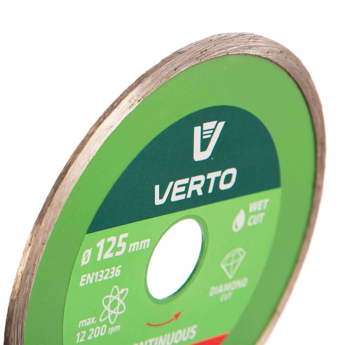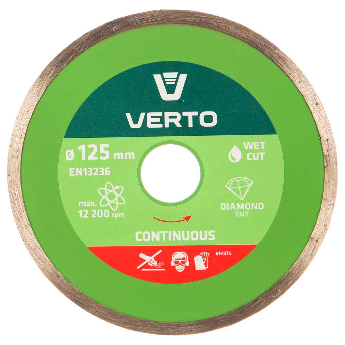 Discul diamantat continuu VERTO 61H3T5 este conceput pentru a fi utilizat pe polizoare unghiulare manuale la tăierea pietrei, cărămizilor, plăcilor. Discul are o margine continuă, ceea ce duce la o tăiere curată, fără așchiere. Adecvat pentru lucrări de construcții de uz mediu și pentru uz casnic.