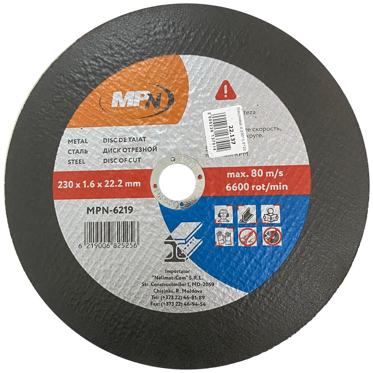 Disc de debitare pentru metal MPN (230 x 1,6 x 22,2 mm) MPN-6219. Pentru informații suplimentare, vă rugăm să vă adresați la consultantul magazinului VERITAN.