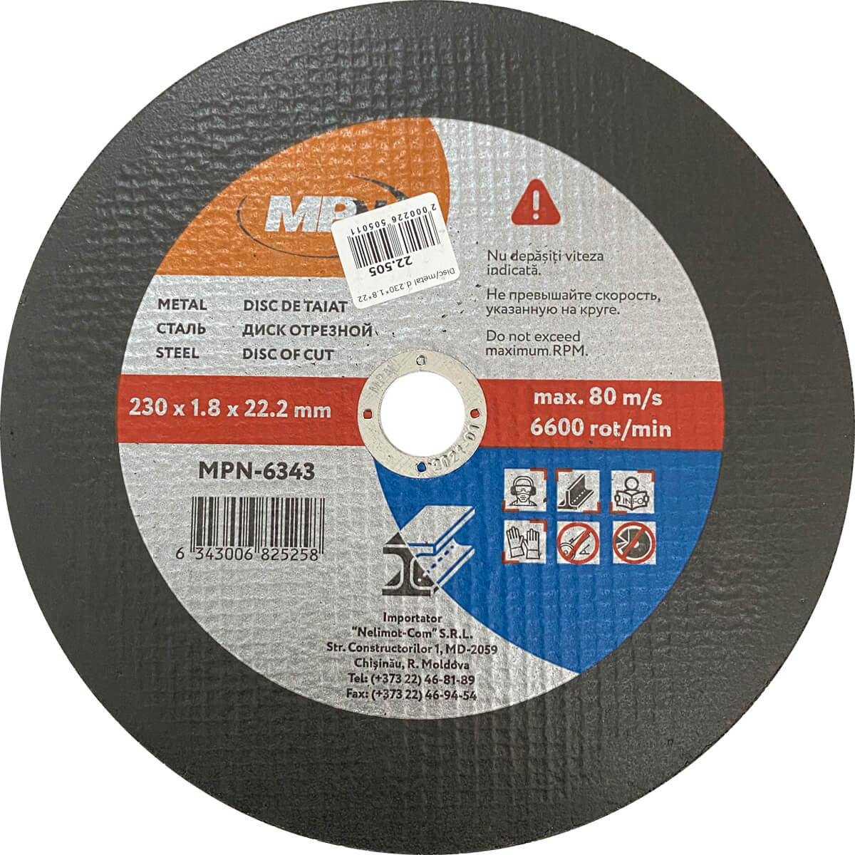 Disc de debitare pentru metal MPN (230 x 1,8 x 22,2 mm) MPN-6343. Pentru informații suplimentare, vă rugăm să vă adresați la consultantul magazinului VERITAN.