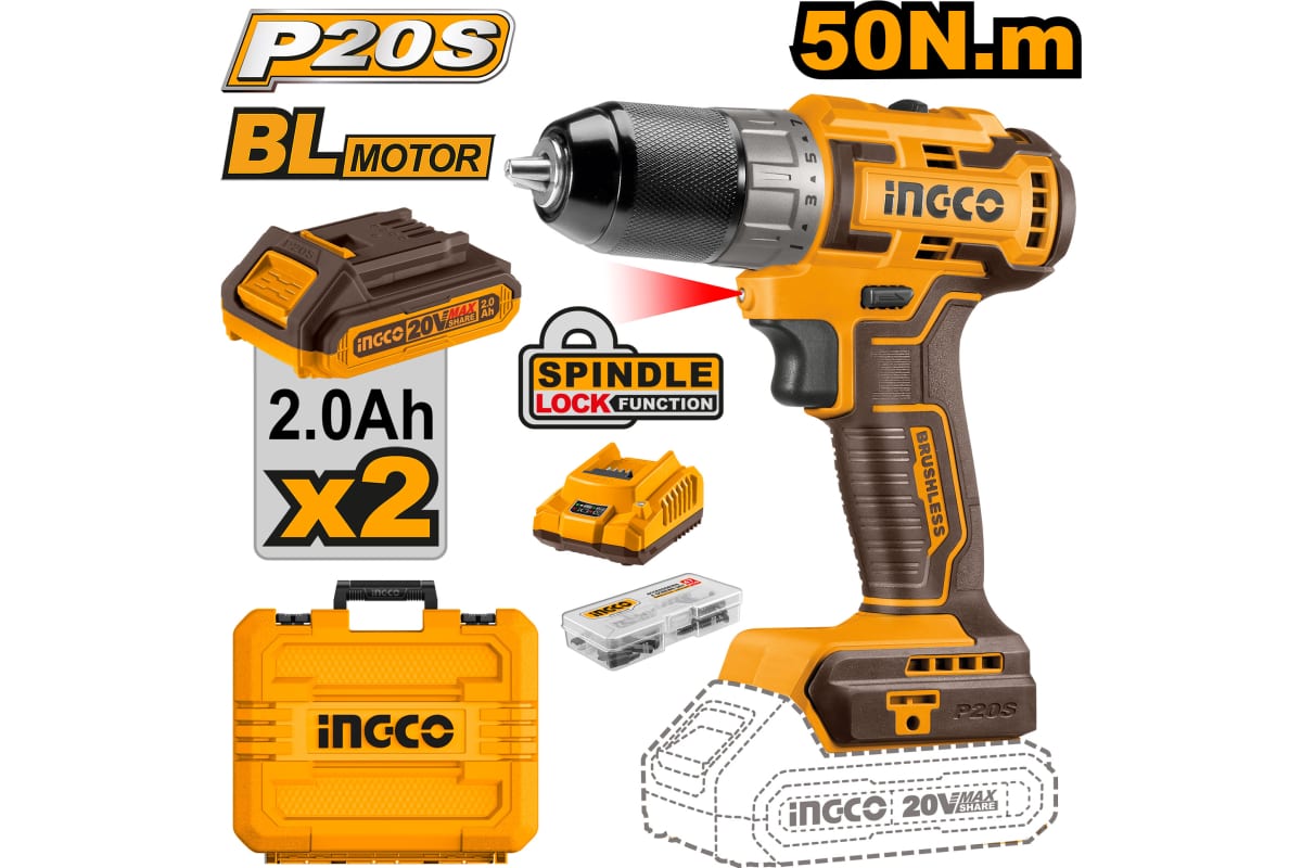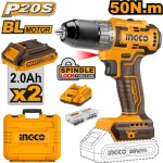 Mașină de găurit și înșurubat INGCO INDUSTRIAL cu acumulator cu impact fără perii (20 V; 50 Nm; 2 Ah x 2) CIDLI20508 - este un instrument de încredere pentru munca profesională și casnică. Cu un motor puternic fără perii, oferă performanțe ridicate și precizie la găurire și înșurubare. Ideal pentru asamblarea mobilei, construcții și renovare.