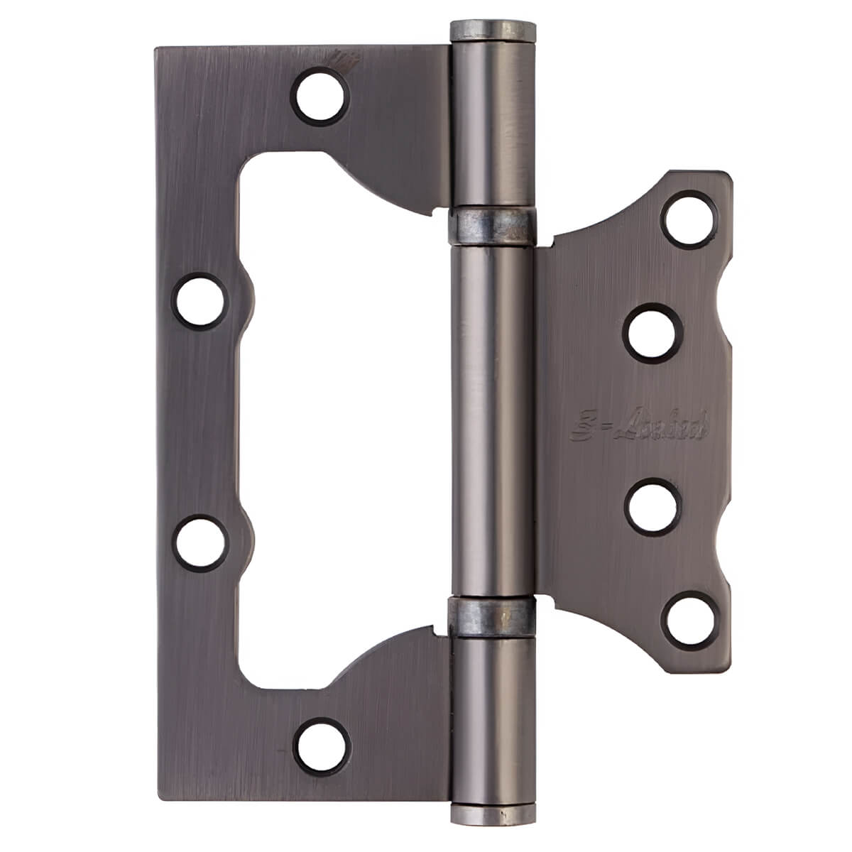 Balama tip fluture S-Locked LL, fără încastrare, 100x75x2,5 mm, 2 rulmenți (2BB), culoare grafit este destinată montajului rapid al ușilor de interior și al ușilor de intrare ușoare, fără frezarea locașurilor. Construcția aplicată de tip „fluture” permite instalarea balamalei corect și precis, reducând timpul de lucru și diminuând riscul de deteriorare a foii de ușă și a tocului.