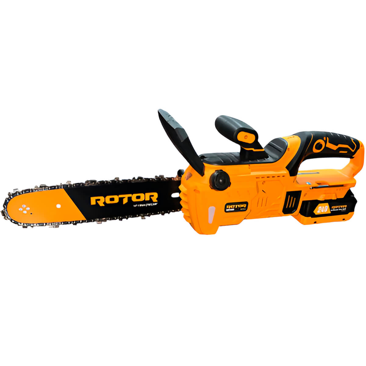 Fierăstrău cu lanț pe acumulator Rotor RBS1201 20V cu lamă de 12″ (36 cm) — un instrument de încredere pentru tăierea lemnului, remarcabil prin putere mare, mobilitate și durabilitate. Ideal pentru grădină, curte, pregătirea lemnelor de foc și lucrări de construcție, fără a depinde de rețeaua electrică.