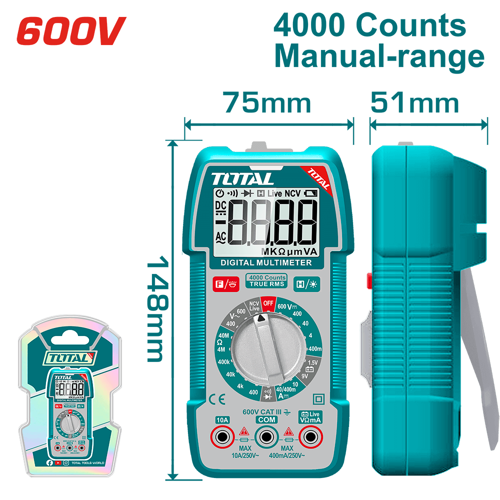 Multimetru digital Total Tools TMT536002 – un dispozitiv fiabil și funcțional pentru măsurarea parametrilor electrici. Este potrivit atât pentru utilizare profesională, cât și pentru uz casnic.