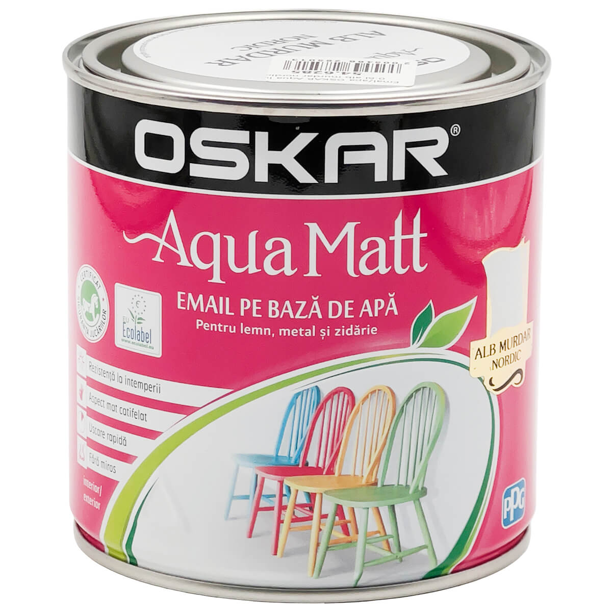 OSKAR Aqua Matt — este un email universal pe bază de apă, destinat pentru vopsirea decorativă și de protecție a suprafețelor din lemn, metal și zidărie. Finisajul lucios oferă o strălucire elegantă, iar nuanța alb murdar nordic adaugă un aspect calm și rafinat interiorului sau exteriorului.
