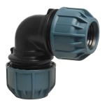 Cot pentru țevi din polipropilenă de compresie Elysee 32 x 32 mm (Art. 0703835) - Utilizat pentru a crea un cot de 90° într-un sistem de alimentare cu apă realizat din țevi din polietilenă cu un diametru de 32 mm.