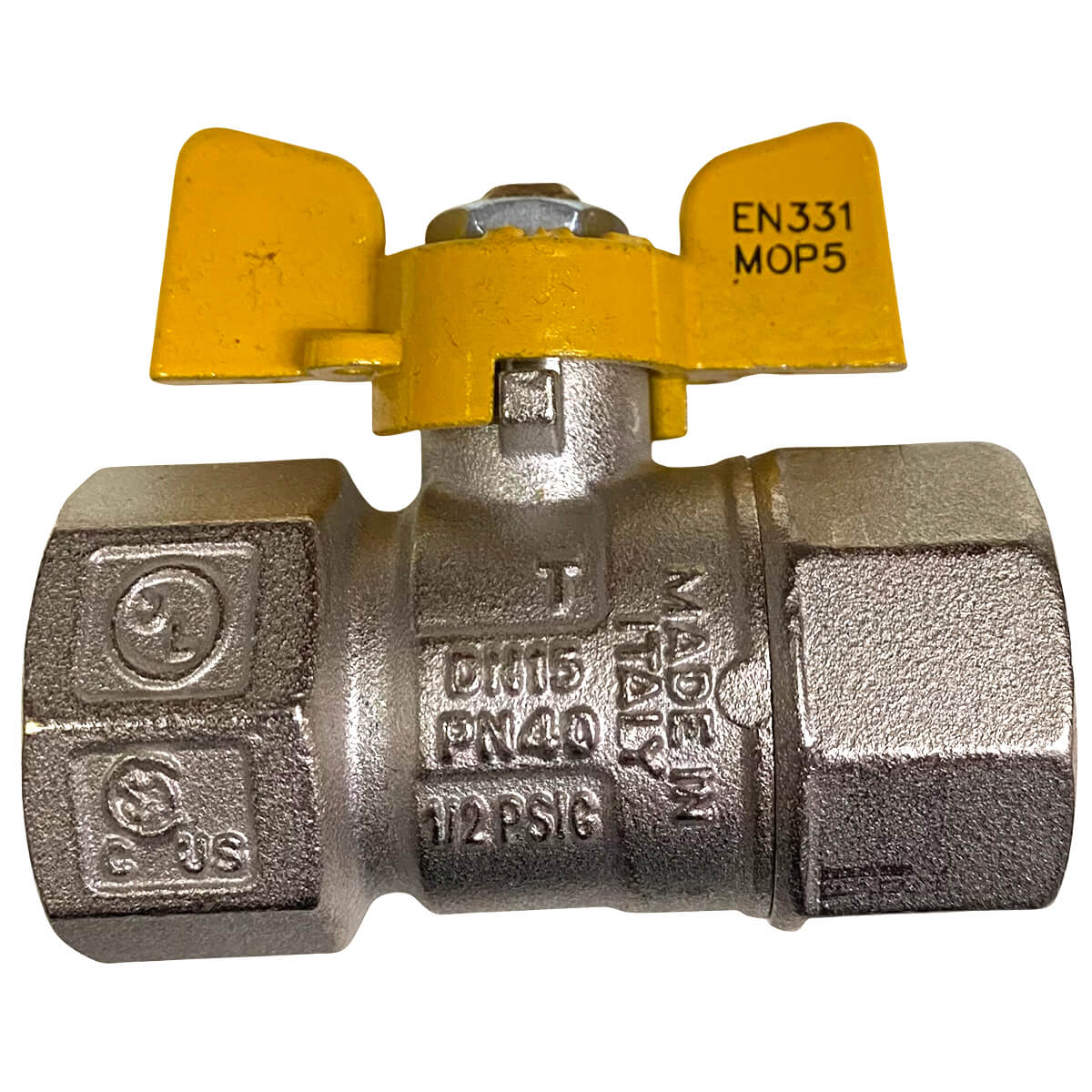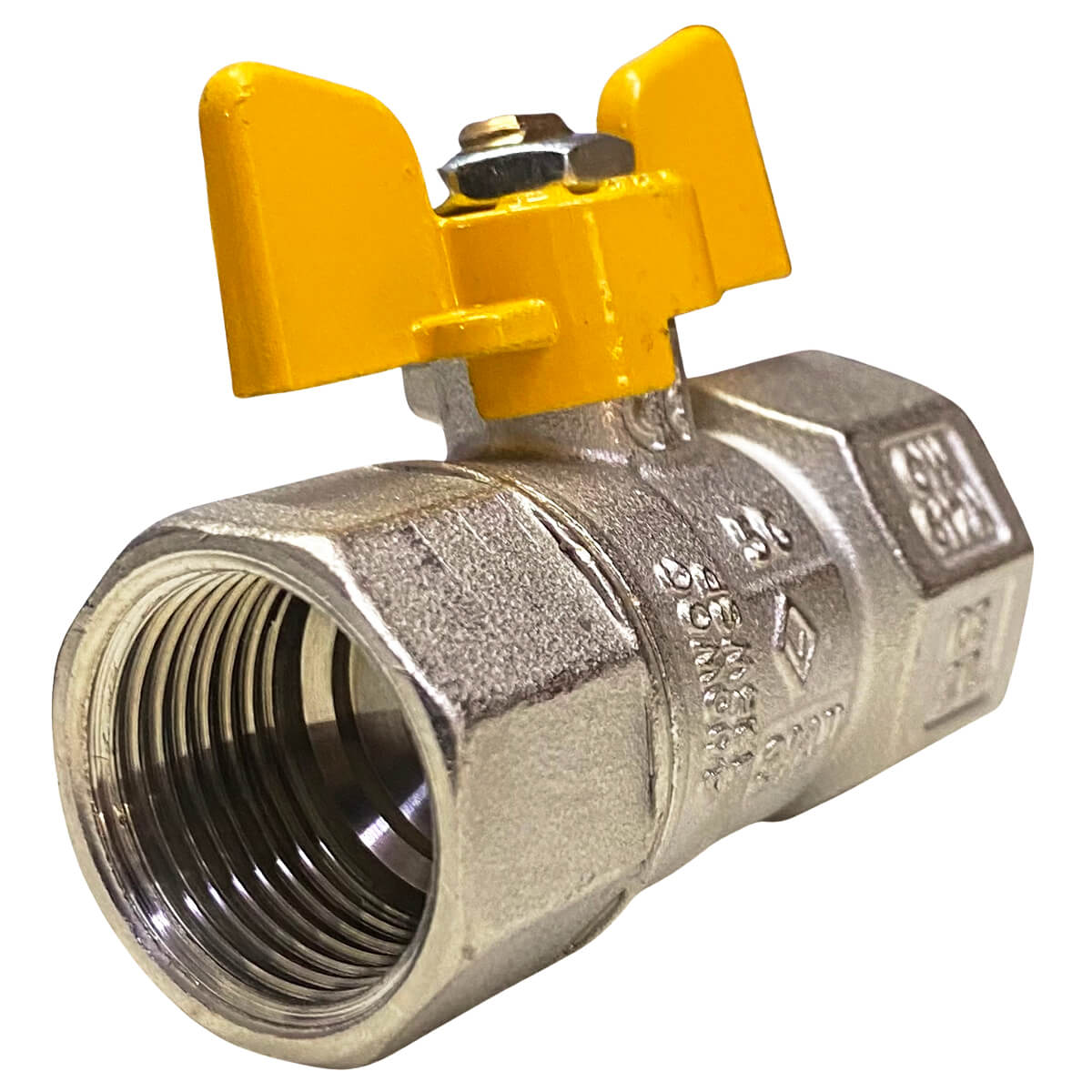 Robinet pentru gaz cu sferă Bugatti 3/4 filet intern x 3/4 filet intern fluture drept - Utilizat pentru deschiderea și închiderea fluxului de gaz. Este destinat utilizării ca supapă de închidere pe conductele de joasă și medie presiune ale sistemelor de alimentare cu gaz.