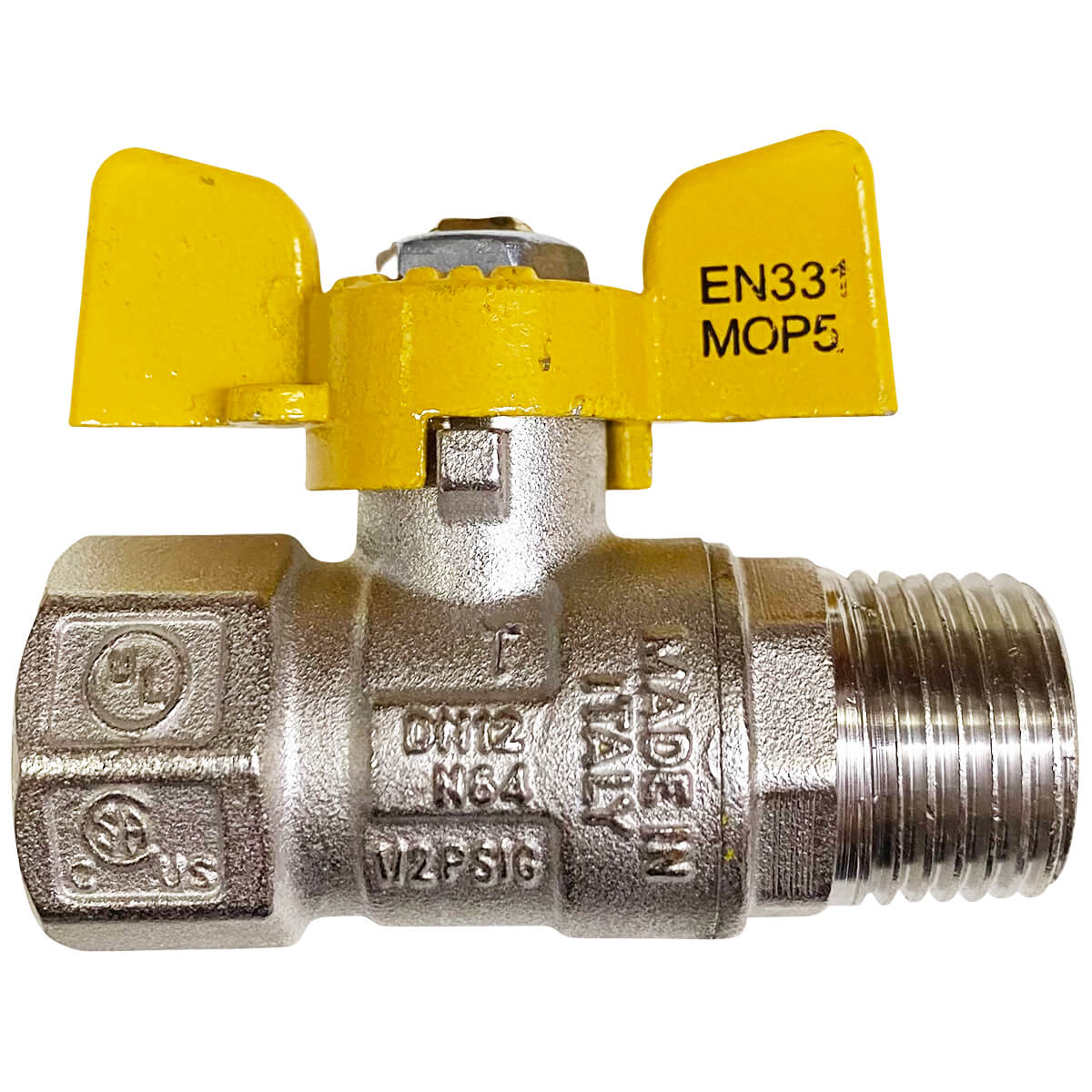 Robinet pentru gaz cu sferă Bugatti 1/2 filet intern x 1/2 filet extern fluture drept - Utilizat pentru deschiderea și închiderea fluxului de gaz. Este destinat utilizării ca supapă de închidere pe conductele de joasă și medie presiune ale sistemelor de alimentare cu gaz.