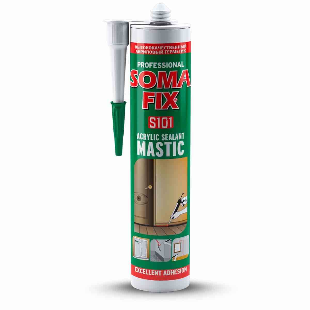 Ermetic acrilic SomaFix S101 alb, 310 ml — utilizat pentru etanșare și reparații în gospodărie și construcții. Produsul este ușor de aplicat, asigură o aderență sigură pe diverse materiale și se remarcă prin rezistența la fisurare.