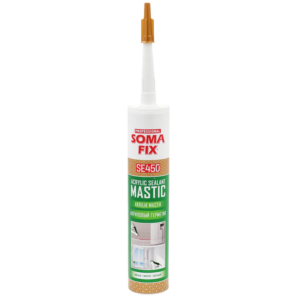 Ermetic acrilic SomaFix SE450 alb 450 g — este o soluție practică și de încredere pentru umplerea fisurilor, rosturilor și îmbinărilor în lucrările de construcții și reparații. Produsul este pe bază de dispersie acrilică, nu conține solvenți și are miros redus, ceea ce îl face sigur și confortabil în utilizare.