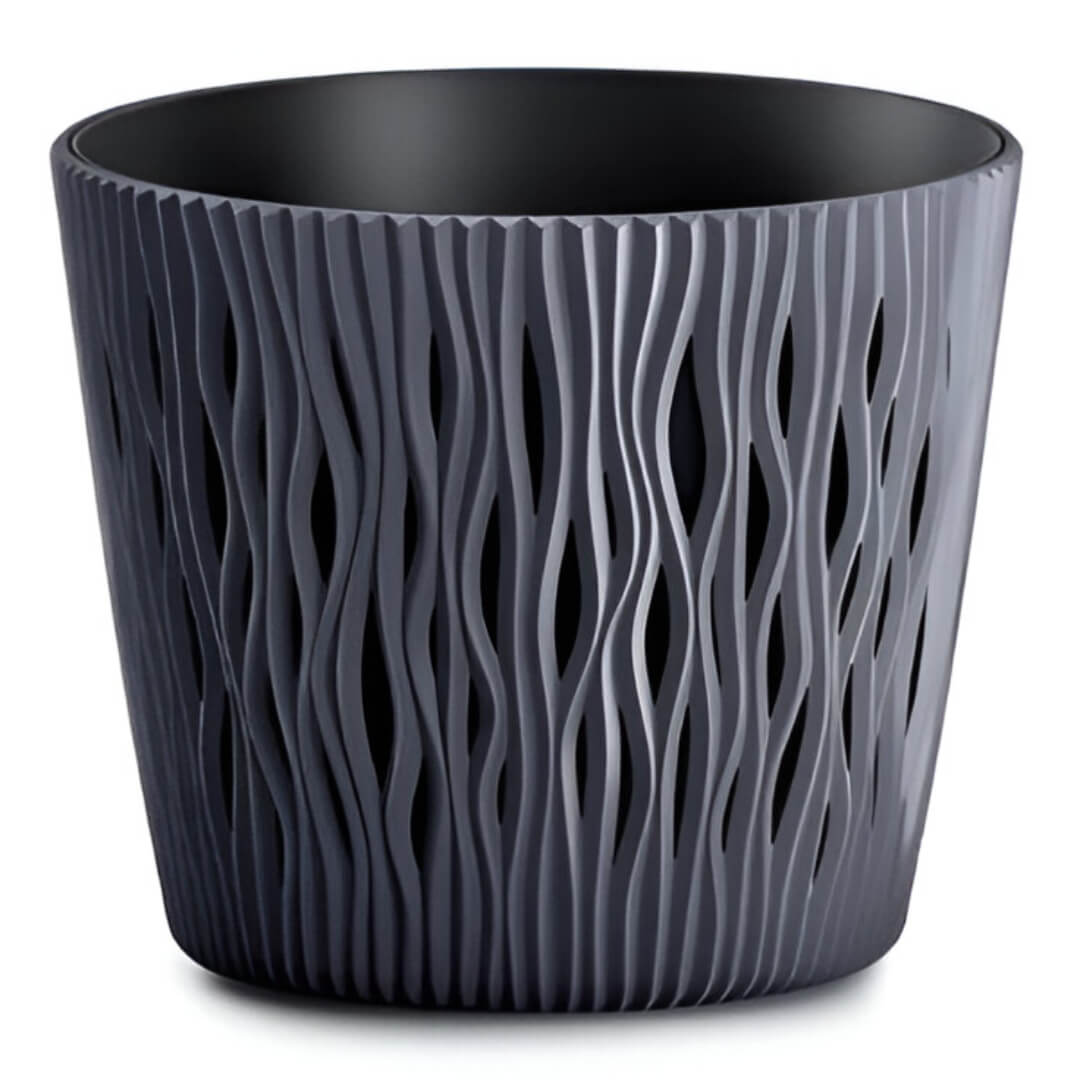 Ghiveci pentru flori Prosperplast Sandy Round DSR160-S433 – o soluție elegantă și practică pentru plante, care va înfrumuseța orice interior. Designul cu suprafață texturată, asemănătoare valurilor pe nisip, oferă produsului expresivitate și îl transformă într-un adevărat element decorativ.
