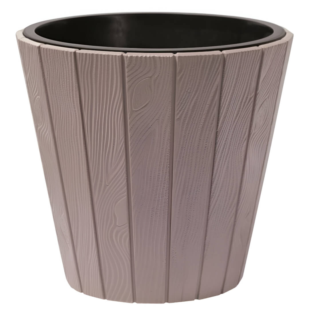 Fabricat din polipropilenă durabilă, acest ghiveci rotund de podea combină ușurința, rezistența la condițiile meteorologice și durabilitatea. Culoarea mocca evidențiază textura materialului, oferind un efect autentic de lemn.