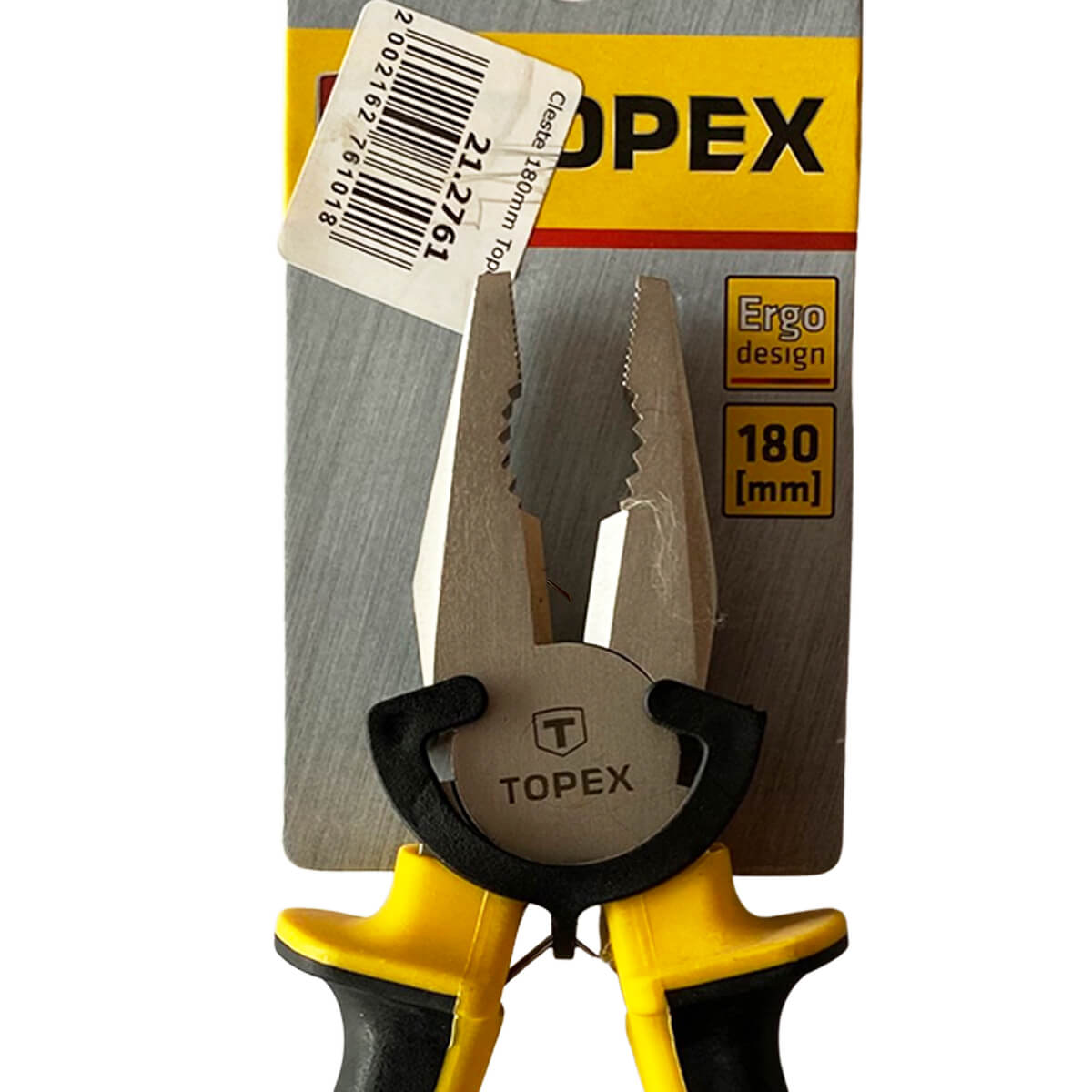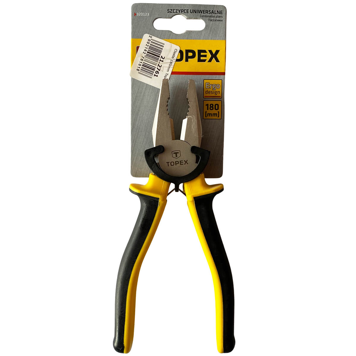Cleștele combinat TOPEX este fabricat din oțel călit, iar marginile tăietoare sunt călite prin inducție. Mânerele ergonomice acoperite cu material antiderapant oferă confort și siguranță, iar cleștii au un arc de expansiune care permite deschiderea mânerelor, asigurând un confort sporit în timpul lucrului.