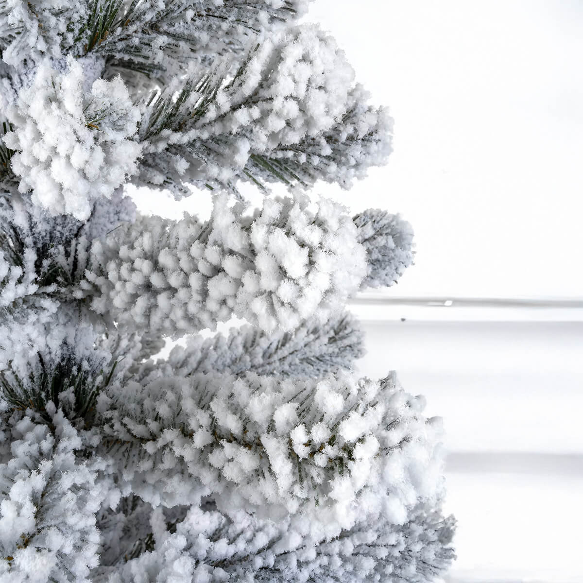 Brad artificial Brad Acasă Himalaya Snow QC132 180 cm — o decorațiune minunată pentru a crea o atmosferă festivă în casa dumneavoastră. Datorită ramurilor artificiale din PVC, bradul arată ca unul natural, cu efect de ramuri înzăpezite, creând o senzație de poveste de iarnă.