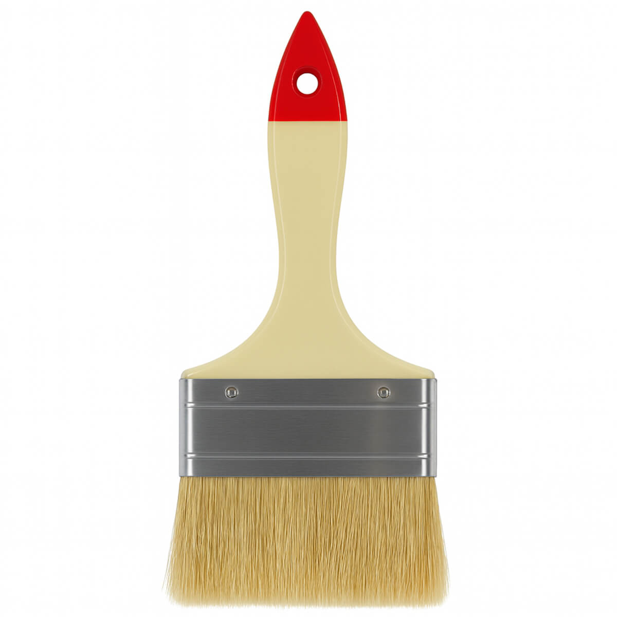 Perie plată Bau Welt cu fibre naturale și mâner din plastic ergonomic — utilizată pentru aplicarea diverselor materiale de finisaj, precum vopsele, lacuri sau grunduri, pe suprafețe netede și texturate.