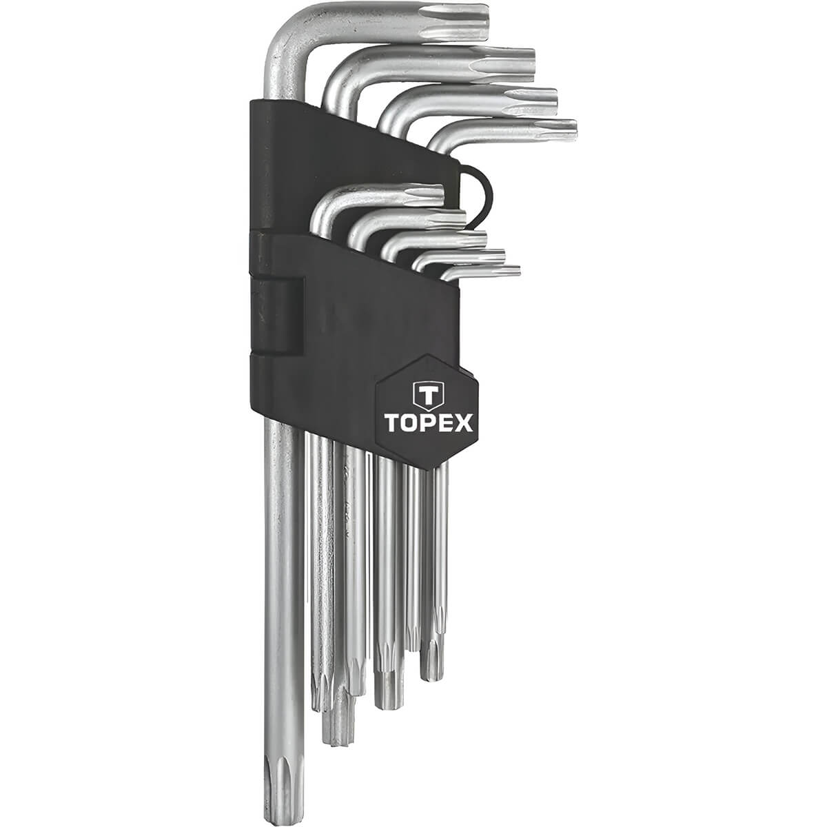 Set de chei TORX 9 buc. TOPEX T10-T50 35D960 - este conceput pentru a lucra cu elemente de fixare Torx. Fabricat din oțel crom vanadiu, puternic și durabil. Forma în L asigură un cuplu ridicat.
