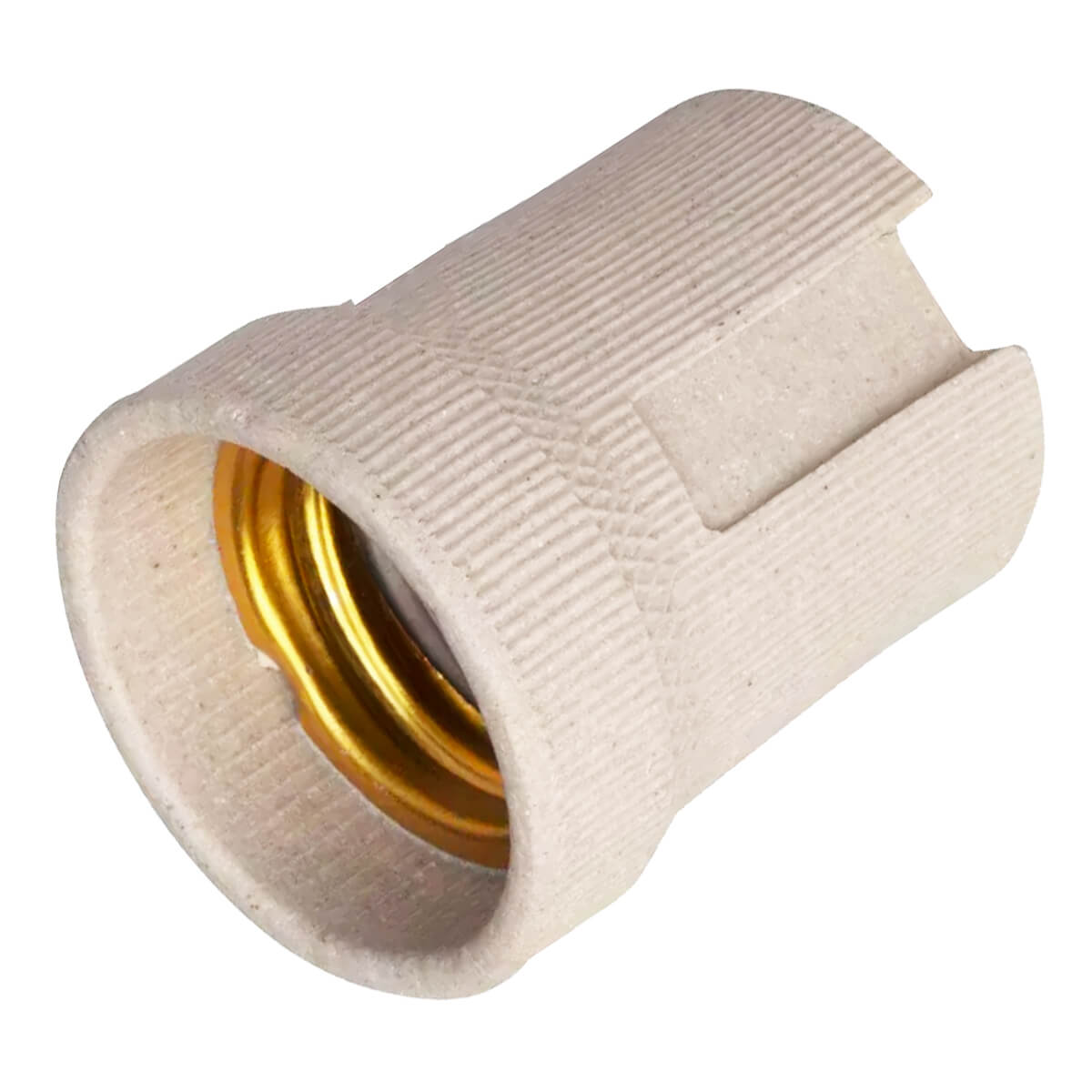 Bază ceramică pentru becuri cu filet E27. Asigură o conexiune sigură și eficientă a becului la rețeaua electrică. Potrivită pentru diferite tipuri de becuri cu caracteristici corespunzătoare.