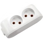 - Design și construcție: Bloc dreptunghiular cu două prize fără contacte de împământare. Fabricat din plastic durabil și auto-stingător de culoare albă, care asigură rezistență și rezistență termică.