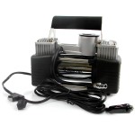 Modelul este echipat cu manometru integrat și mâner ergonomic cu înveliș moale pentru transport confortabil. Dimensiunile compacte de 25 × 10 × 21 cm și greutatea de 2,8 kg fac compresorul ușor de transportat și de depozitat în portbagaj.
