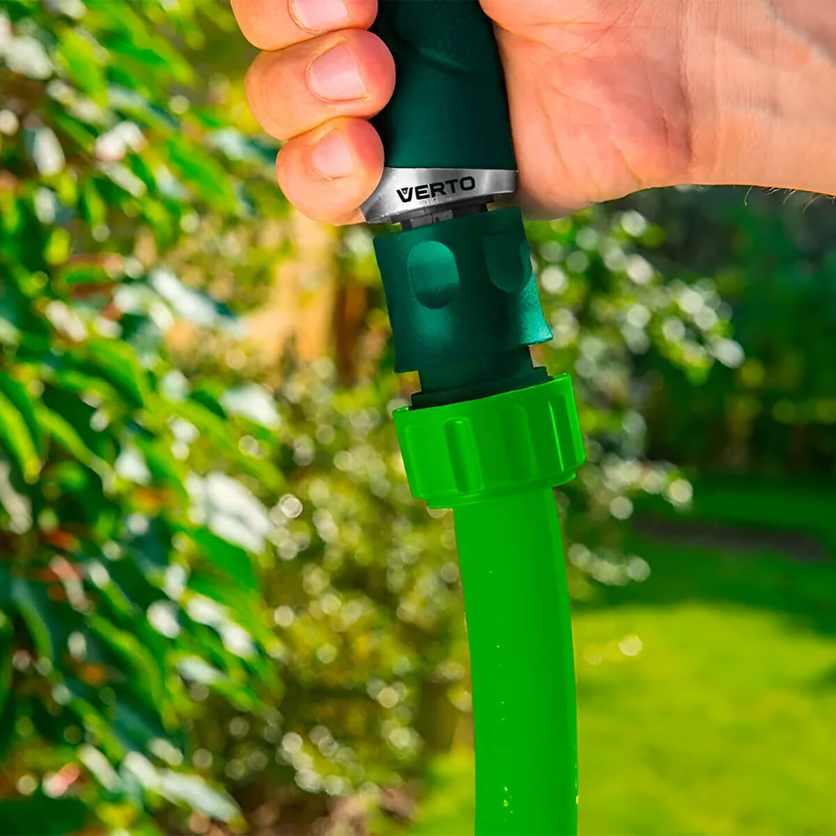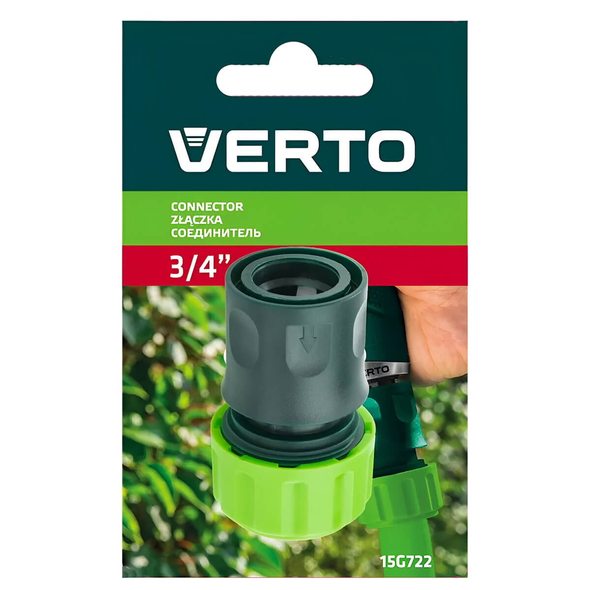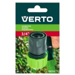 Conector pentru furtun VERTO 3/4" 15G722 - este conceput pentru a conecta furtunul la duza de udare. Apa trebuie să fie oprită înainte de a schimba duza. Este fabricat din plastic de înaltă rezistență pentru a asigura fiabilitatea și durabilitatea utilizării.