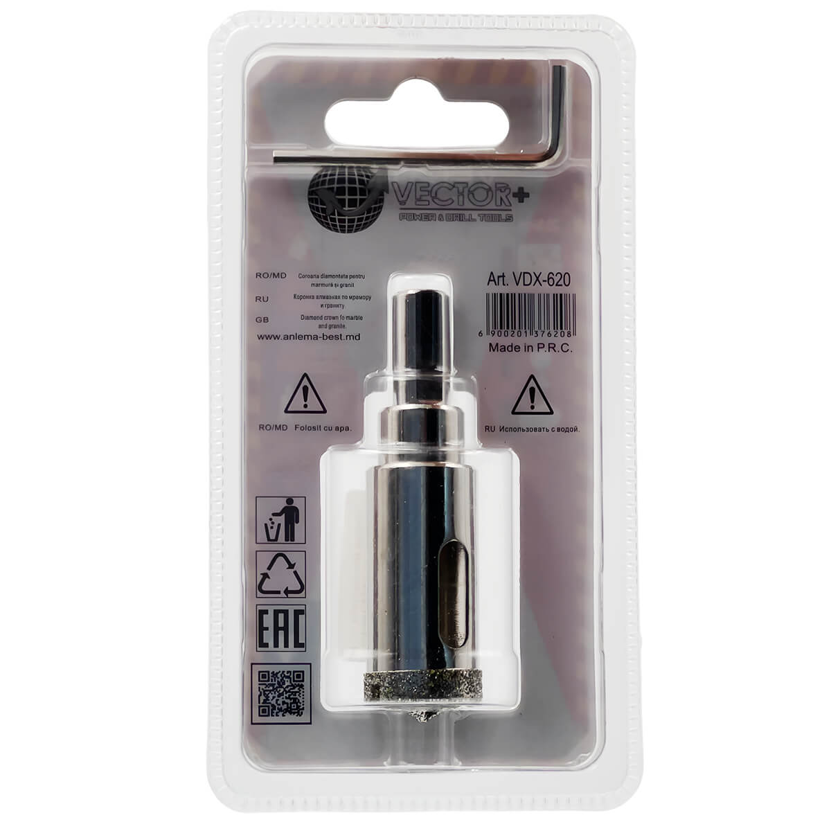 Carotă diamantată cu burghiu de centrare 20 x 4 x 65 mm VECTOR+ VDX-620 - este un instrument de înaltă calitate pentru găurirea găurilor în gresie, plăci de faianță și sticlă.