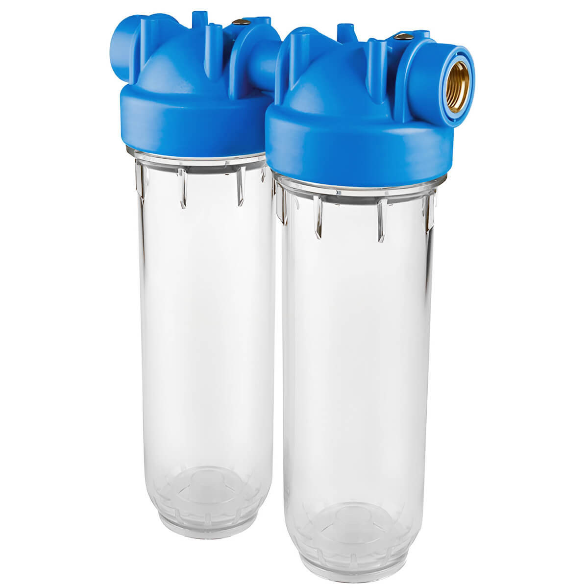 Carcasa filtrului pentru apă ATLAS FILTRI DP 10 DUO 3/4 filet intern x 3/4 filet intern transparent (dublu) - este o soluție sigură și practică pentru purificarea apei. Carcasa dublă oferă protecție și durabilitate suplimentare. Potrivit pentru diferite sisteme de filtrare și este ușor de instalat.