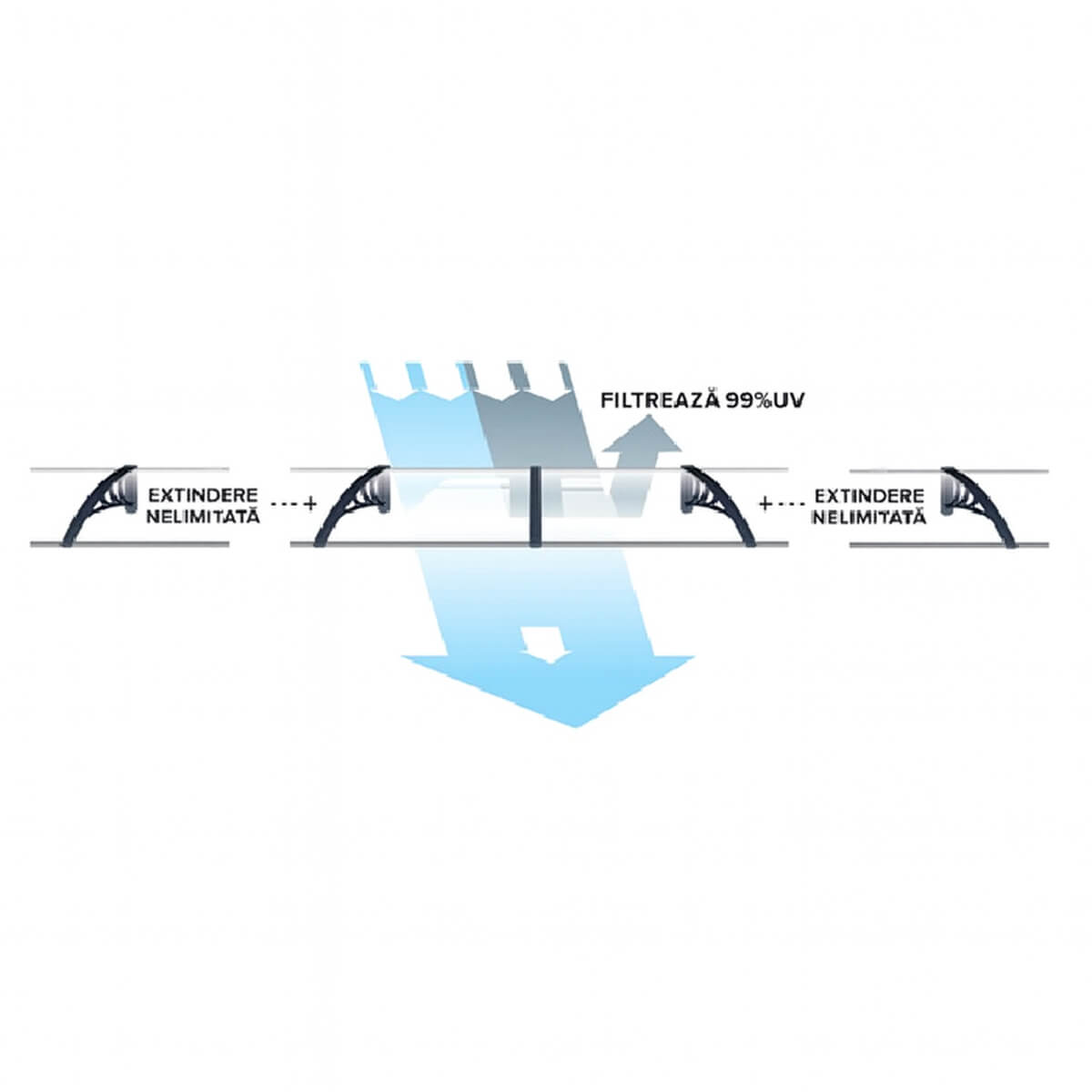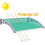 Copertină pentru ușă de intrare din policarbonat Verona 160x120 cm D1612H-P — o soluție practică și elegantă pentru protecția intrărilor, ferestrelor sau balcoanelor împotriva ploii, zăpezii și razelor solare directe. Construcția îmbină un design modern cu materiale de încredere, asigurând durabilitate și confort în utilizare.