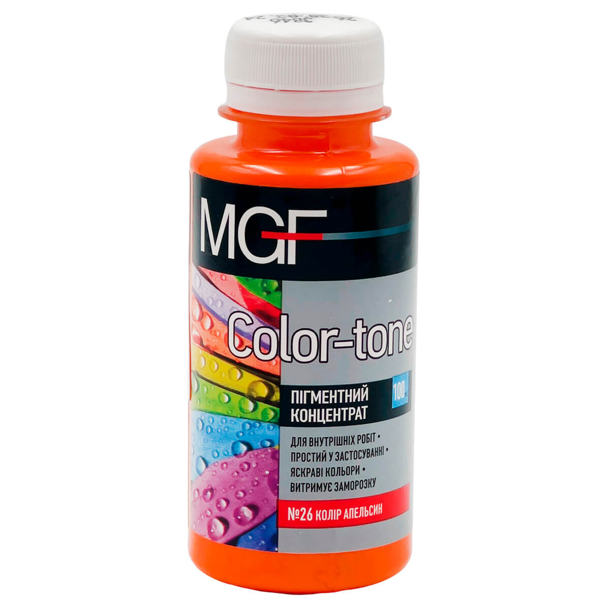 Coler MGF Color-tone portocală №26 0,1 l - Colorantul este utilizat pentru colorarea vopselelor de dispersie, precum și a vopselelor pe bază de ulei, a mortarelor, a emailurilor alchidice și a amestecurilor uscate pentru construcții.