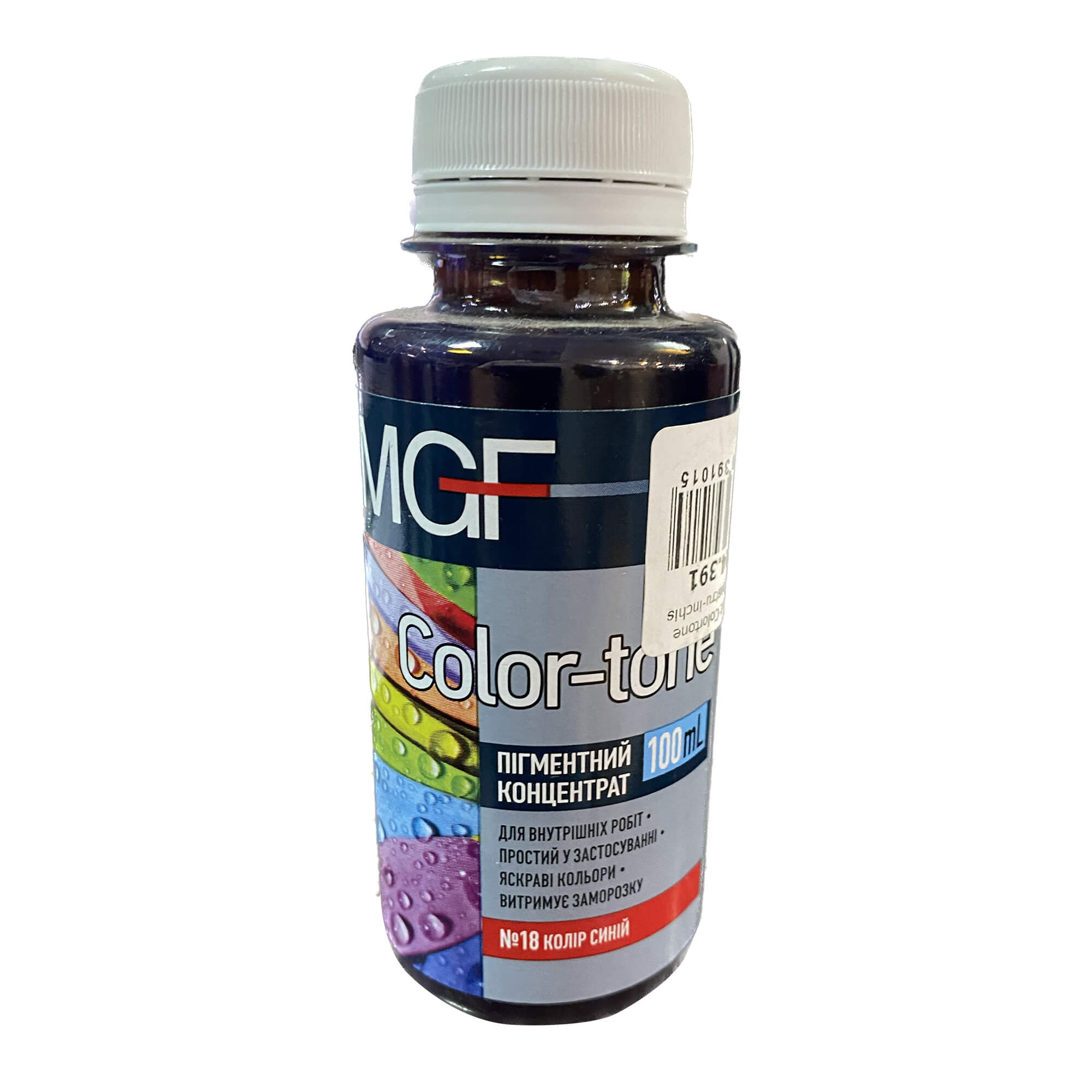 Coler MGF Color-tone albastru №18 0,1 l - Colorantul este utilizat pentru colorarea vopselelor de dispersie, precum și a vopselelor pe bază de ulei, a mortarelor, a emailurilor alchidice și a amestecurilor uscate pentru construcții.