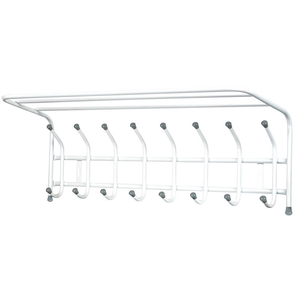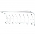 Acest model este echipat cu 8 cârlige și un raft, care vă permite să așezați compact și ordonat jachete, paltoane, pălării și alte accesorii. Raftul pentru haine este fabricat din metal durabil și acoperit cu vopsea pulbere de înaltă calitate, ceea ce îl face durabil și rezistent la coroziune.