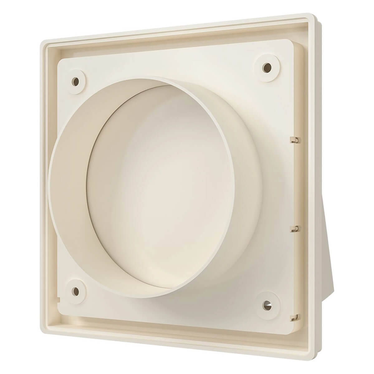 Ieșire de ventilație ERA pe perete cu flanșă și supapă de reținere 150x150 mm d100 mm fildeș 1515К10ФВ - Se utilizează pentru alimentarea sau extragerea aerului în sistemele de ventilație de alimentare sau de extracție. Echipat cu o supapă de reținere, care, la rândul său, împiedică inversarea fluxului de aer în sistemul de ventilație.