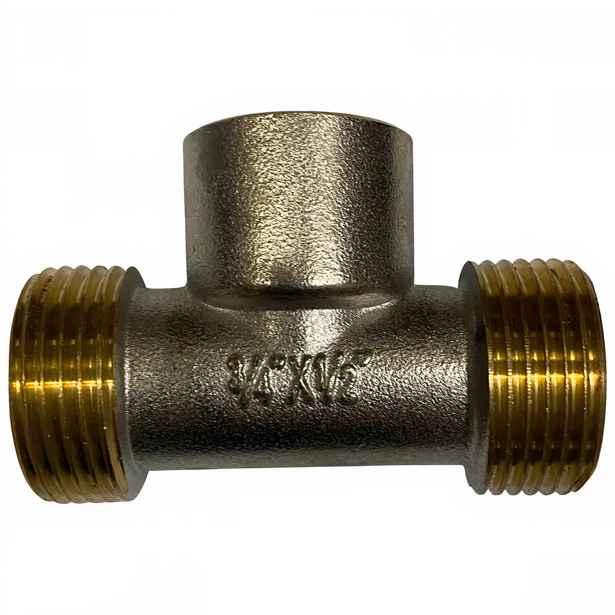Teu 3/4 filet extern x 1/2 filet intern x 3/4 filet extern din alamă - Acesta este utilizat ca un separator de flux de apă în două direcții.