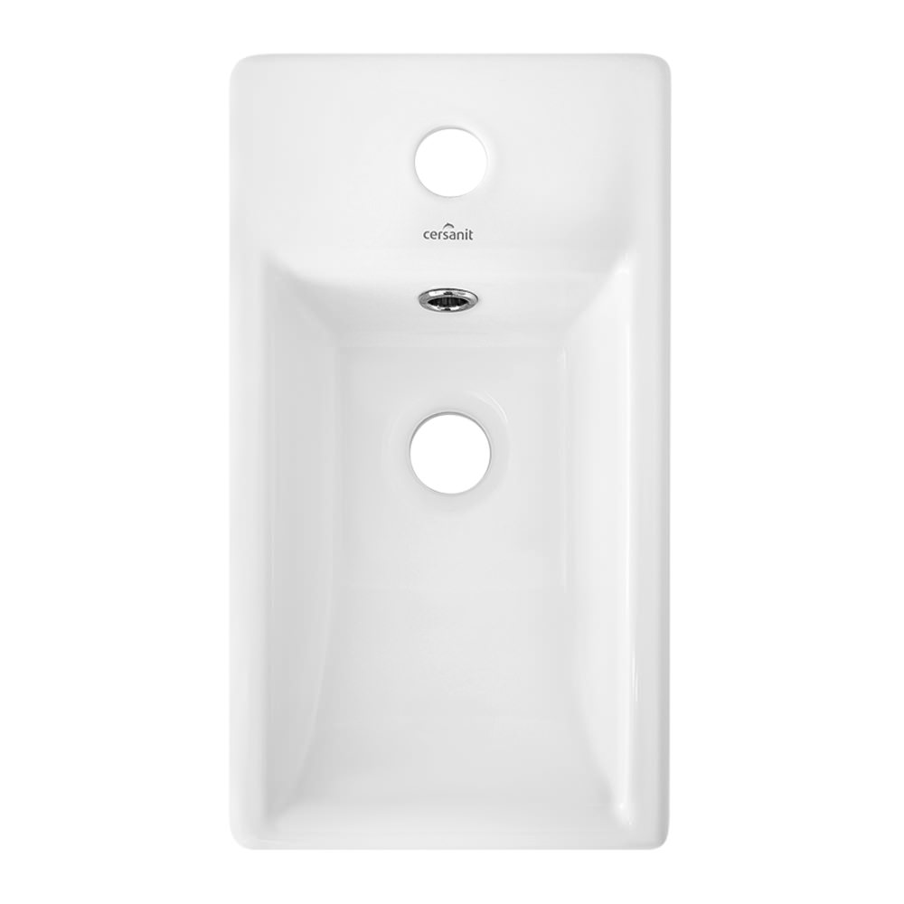 Lavoarul aplicat Cersanit Como are dimensiunile de 400 x 220 x 145 mm. Prezintă un design în stil modern. Dispune de o singură gaură pentru baterie. Culoarea este albă. Aparține seriei Como. Sifonul se achiziționează separat. Fabricat din porțelan sanitar. Producător: Cersanit, Polonia.