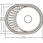 - Dimensiunile chiuvetei sunt 570×450×160 mm, iar adâncimea cuvei de 160 mm permite spălarea ușoară atât a vaselor, cât și a oalelor voluminoase.