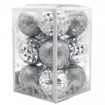 Setul de jucării pentru bradul de Crăciun, format din 12 bucăți în culoarea argintiu, AT4010, este o adiție minunată pentru bradul de sărbători. Setul include o varietate de 12 jucării argintii. Este confecționat din materiale de înaltă calitate. Creează o atmosferă elegantă și nobilă în timpul sărbătorilor. Se fixează ușor pe ramuri și adaugă un aspect luxos și strălucitor bradului.