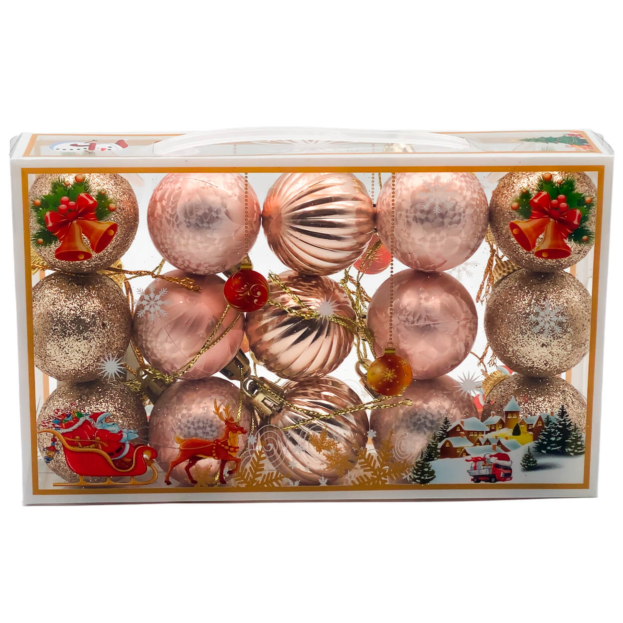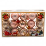 Setul de jucării pentru bradul de Crăciun, format din 15 bucăți în culorile aur roz, AT4149, este o adiție minunată pentru bradul de sărbători. Setul include o varietate de 15 jucării în nuanțe de aur roz. Este confecționat din materiale de înaltă calitate. Creează o atmosferă elegantă și luxoasă în timpul sărbătorilor. Se fixează ușor pe ramuri și adaugă bradului un aspect fermecător și strălucitor.