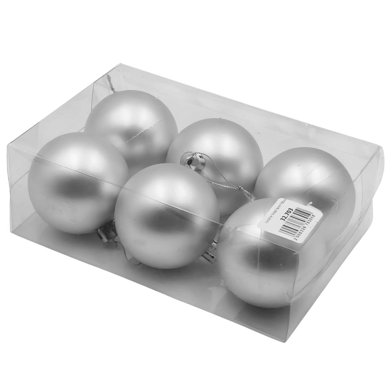 Setul de jucării pentru brad de Crăciun conține 6 bucăți cu un diametru de 6 cm, într-o finisare mată argintie. Codul de produs: 336-136. Este perfect pentru decorarea bradului de Crăciun. Va crea o atmosferă elegantă și rafinată, adăugând farmec interiorului dumneavoastră festiv.