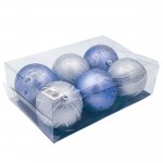 Setul de jucării pentru bradul de Crăciun conține 6 bucăți cu diametrul de 8 cm. Culorile includ gri și violet. Codul de produs: NV3073. Jucăriile sunt perfecte pentru decorarea bradului de Crăciun, adăugându-i un aspect elegant și stilat. Ele vor crea o atmosferă festivă și vor fi un adevărat ornament al spațiului tău.