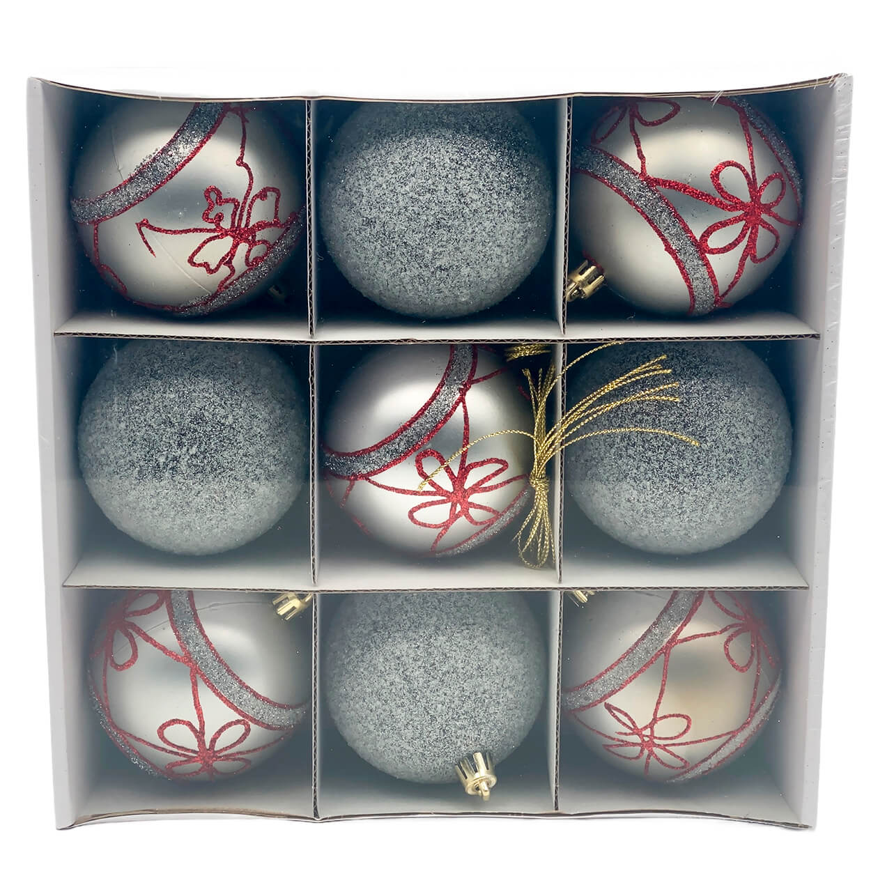 Setul de jucării pentru bradul de Crăciun, format din 9 bucăți în culoarea argintiu, AT4416, este o adiție minunată pentru bradul de sărbători. Setul include o varietate de 9 jucării argintii. Este confecționat din materiale de înaltă calitate. Creează o atmosferă elegantă și strălucitoare în timpul sărbătorilor. Se fixează ușor pe ramuri și adaugă bradului un aspect fermecător și sclipitor.