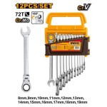Set chei cu clichet flexibil INGCO INDUSTRIAL, 12 bucăți, 8–19 mm, oțel Cr-V, HKSPAR1123 — un set profesional destinat lucrărilor cu îmbinări filetate în spații restrânse. Fiecare cheie este echipată cu un cap flexibil și mecanism cu clichet, ceea ce permite o operare rapidă și precisă fără a scoate cheia după fiecare mișcare.
